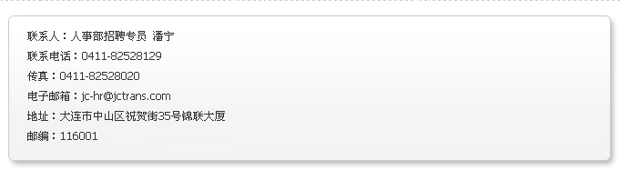 Copyright ? 2010 jctrans.cn All rights reserved 錦程物流集團(tuán)版權(quán)所有 遼ICP備10004491號(hào)-1